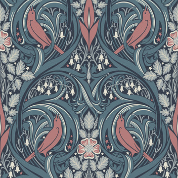 The Bird Scroll wallpaper from the Arts and Crafts collection by Galerie beautifully blends the...