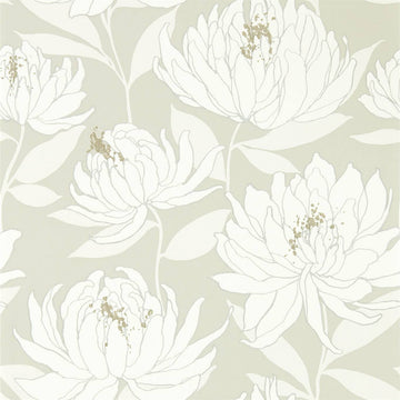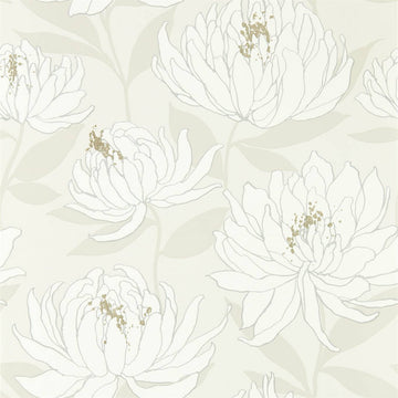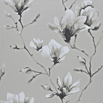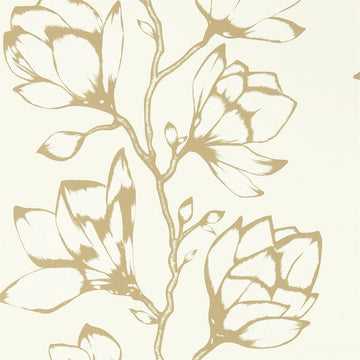 A painterly magnolia trails across this wide width wallpaper in two soft colourways. Delicate metallic...