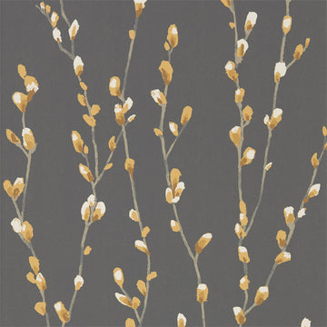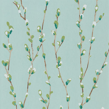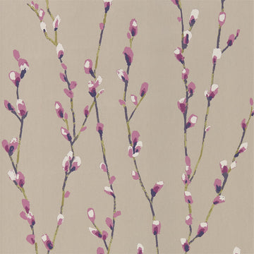 An abstract painterly interpretation of sprays of pussy willow adorn this wallpaper.
