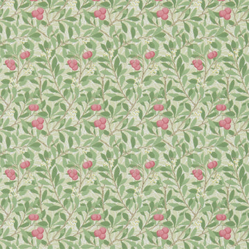 Curling acanthus leaves and speckled fruits animate this wallpaper originally designed by William Morris in...