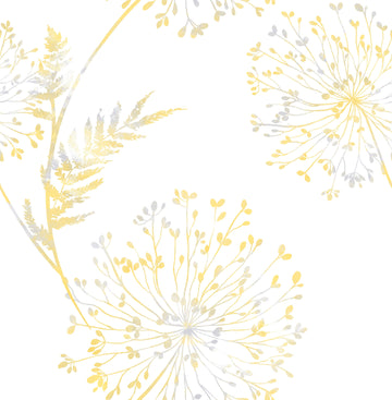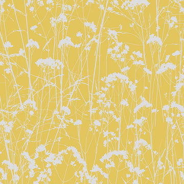 Soft, shimmering grey paper is adorned and highlighted with free flowing, subtle seed head design...