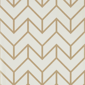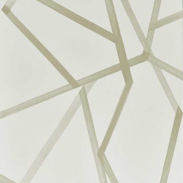 A striking wallpaper from Harlequin Momentum showcasing graphic metallic lines in a repeating geometric tile...