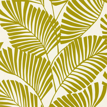 With a chalky background and stylised palm leaves, this wallpaper has a strong deco feel....