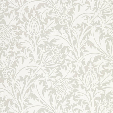 Over-sized, simplified thistle heads framed by scrolling leaves adorn this all-over wallpaper, echoing the neo-Gothic...