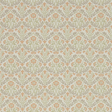 Intertwining roses and meandering flowering carnations meander over this wallpaper creating a vertical pattern repeat....