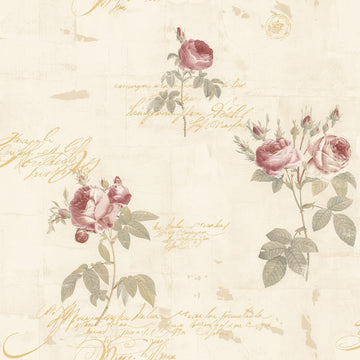 The Galerie Rose Garden Wallpaper featuring Calligraphy Roses presents a charming fusion of traditional rose...