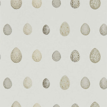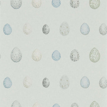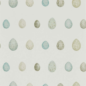 Charming mottled eggs of robins, tree swallows, blackbirds and crossbills nest together in a neutral...