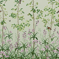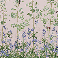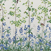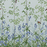 The Little Greene Bird & Bluebell Wallpaper is a stunning mural that exudes timeless elegance....