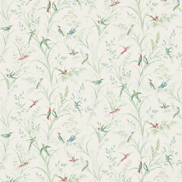 Featuring dainty hummingbirds with their iridescent feathers amongst wild grasses. This delicate wallpaper design in...