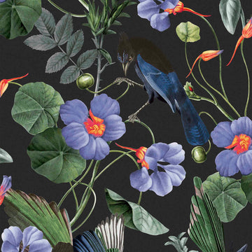 Magpie is a striking intricate wallpaper that will transport you to a midnight garden setting....