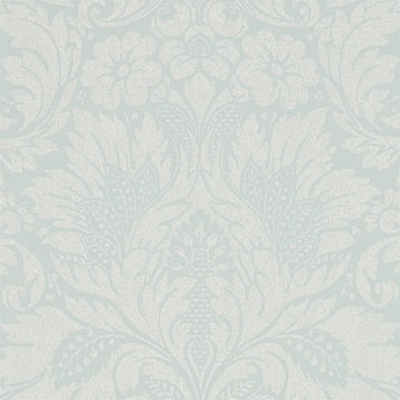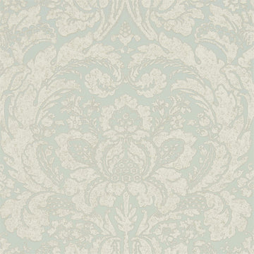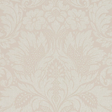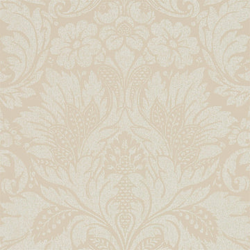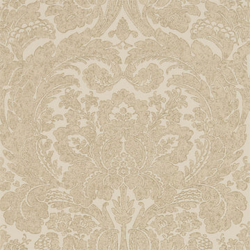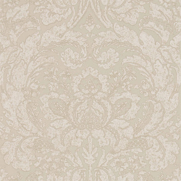 This sophisticated, large-scale damask wallpaper design in subtle colourways, created with wooden blocks on textured...