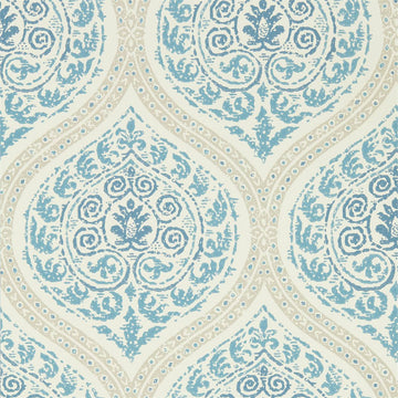 In a fresco style and reminiscent of Indian block prints, this mirrored ogee trellis wallpaper...