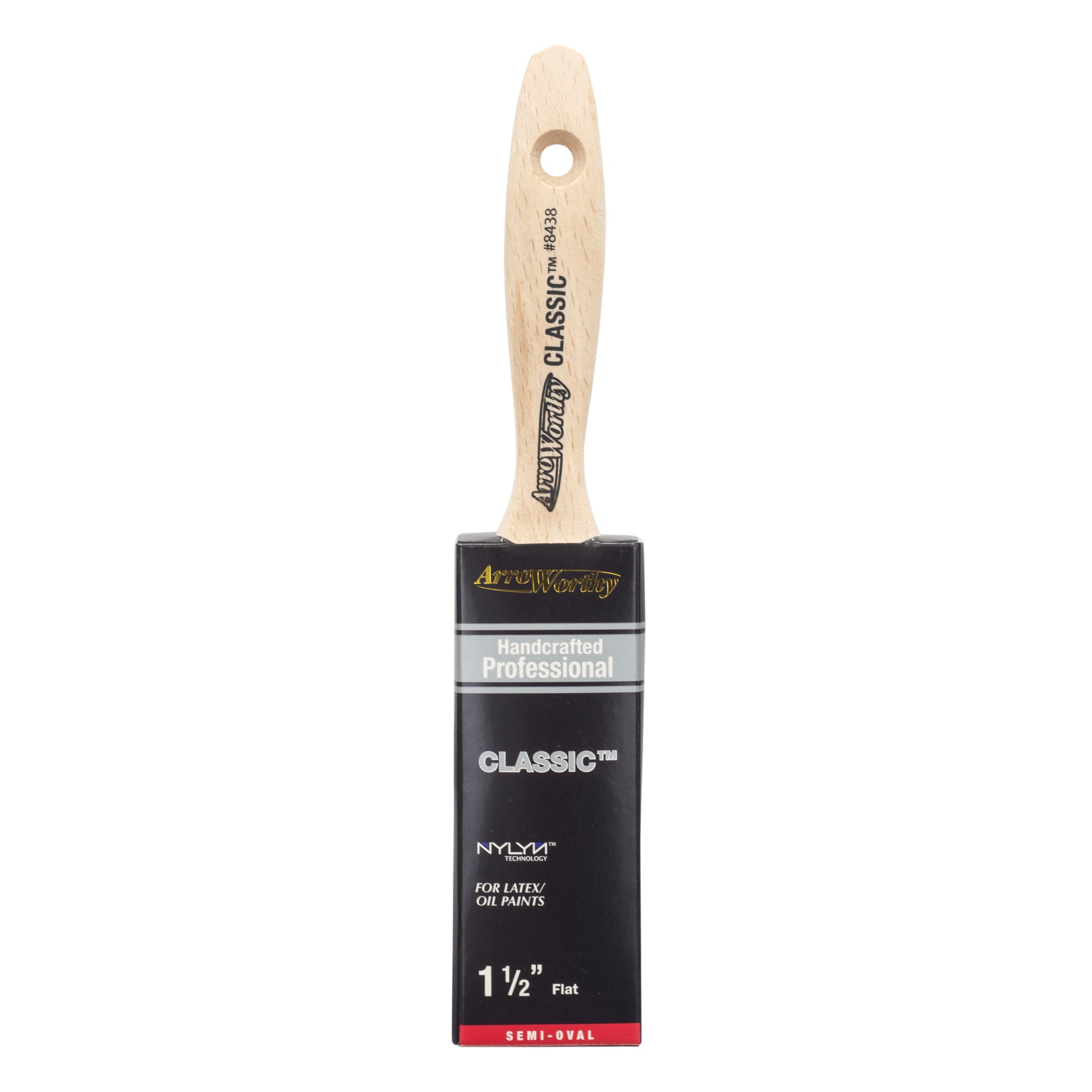 The “beaver tail” handle design is ergonomically crafted to fit comfortably in the hand, reducing fatigue during extended use. The brush’s filaments are a blend of synthetic materials, chosen for their durability, smooth paint application, and compatibility with both water-based and oil-based paints. The Arroworthy Oval Beaver Tail Brush is a durable, high-performance tool that maintains its shape and quality over multiple uses, providing reliable performance for professionals seeking a precise, quality finish.