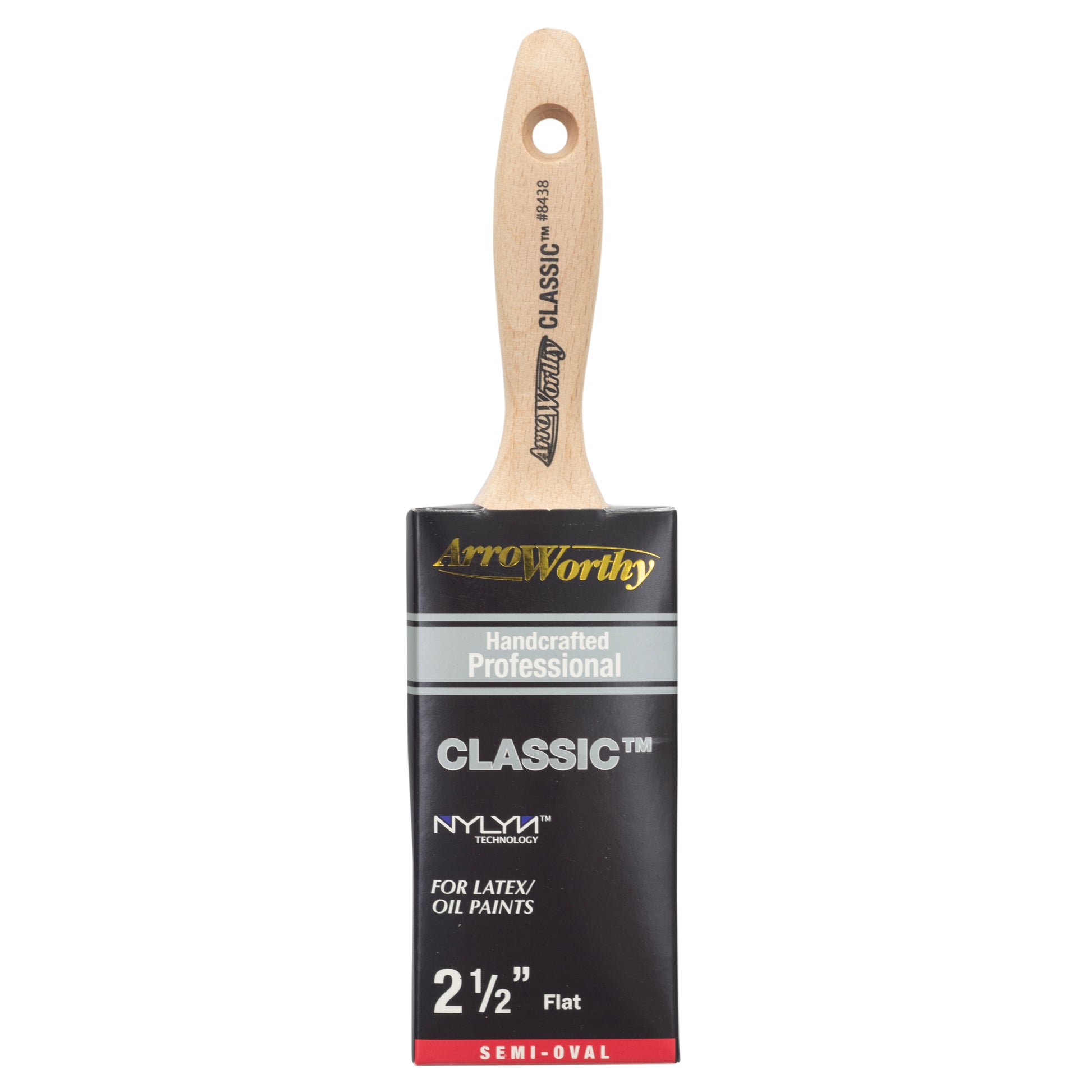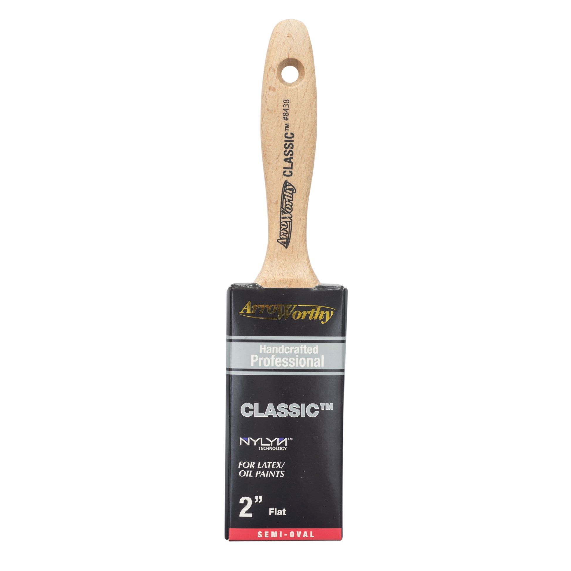 The Arroworthy Oval Beaver Tail Brush is a high-quality paintbrush designed to offer precision, comfort, and versatility for professional painters. The oval shape of the brush head allows for superior control, making it ideal for cutting-in, detailed work, and edging, as it holds a good amount of paint and releases it evenly. This shape also helps painters achieve a more consistent coverage on both flat and textured surfaces, reducing the need for repeated strokes.