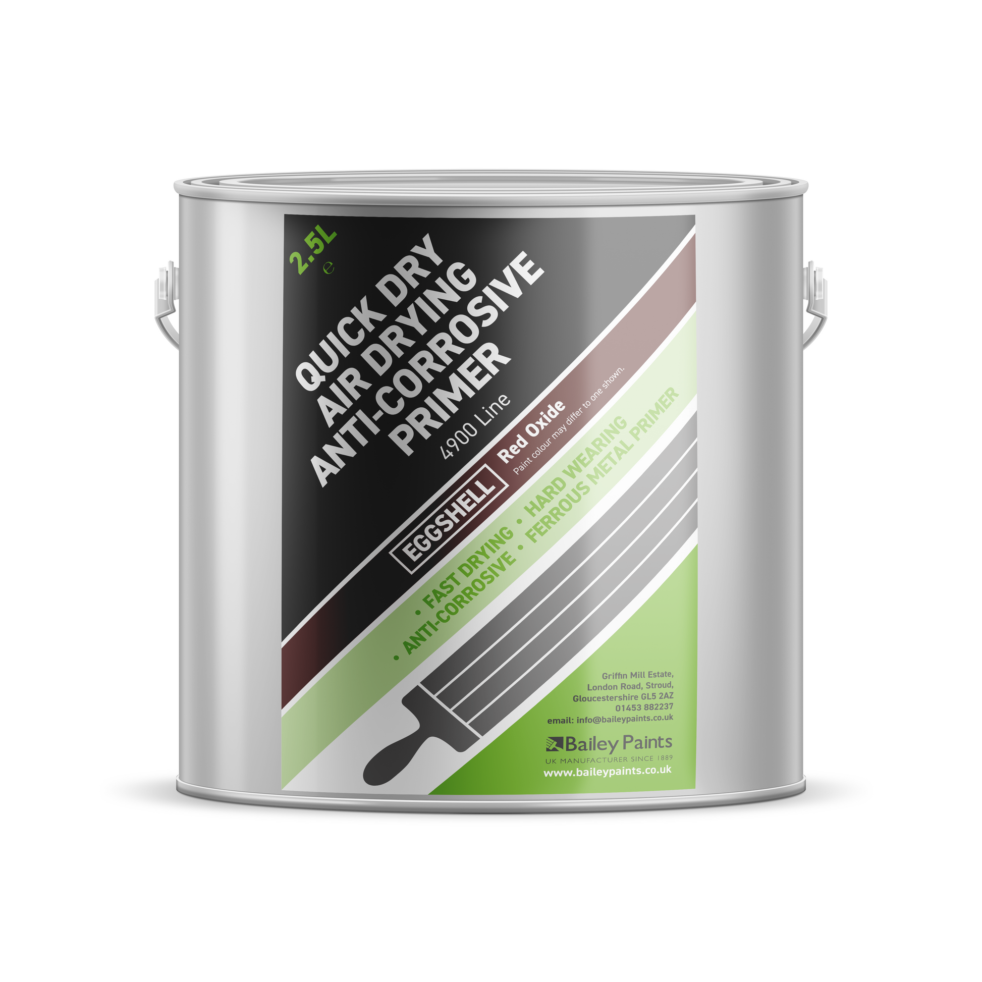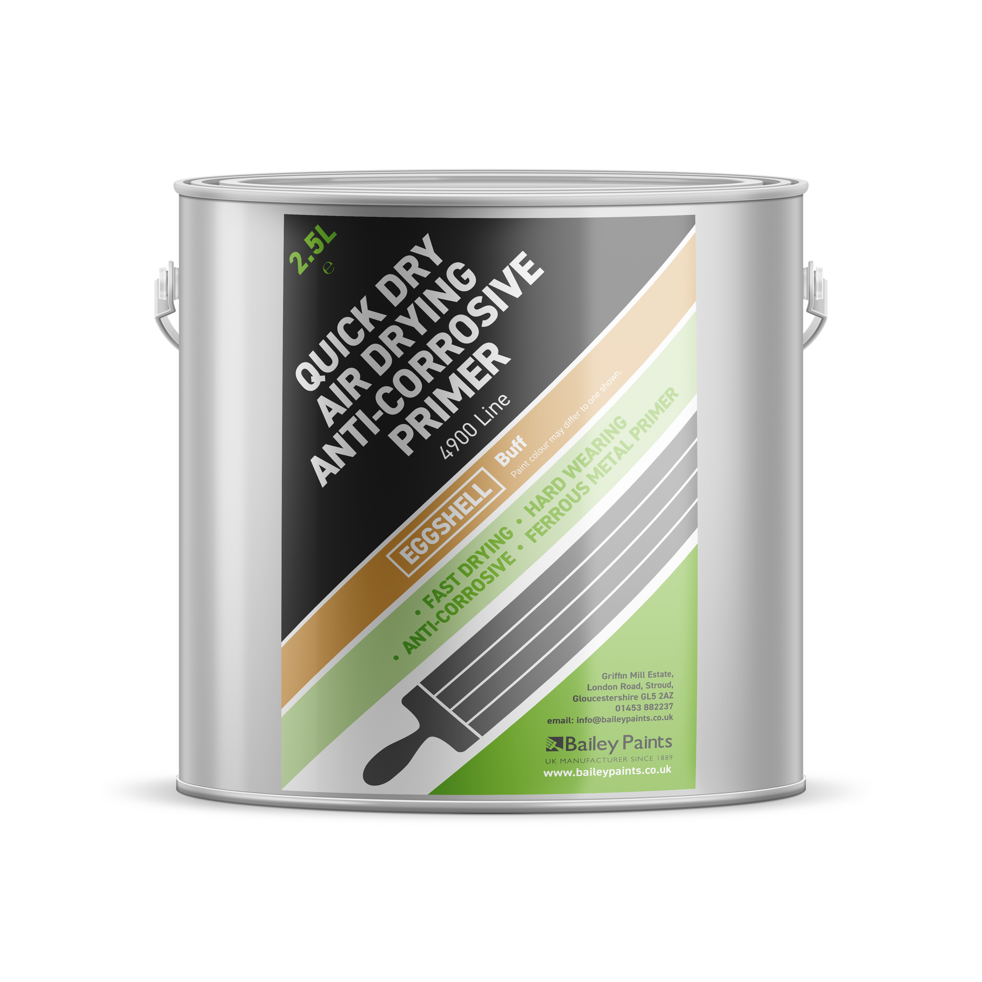 Bailey Paints Air Drying Primer is expertly formulated for fast drying, providing an excellent base coat on ferrous metals. Its matt finish ensures that your chosen topcoat flows smoothly and adheres perfectly, enhancing the overall durability and appearance of the final finish. Available in four different colours, this primer can be matched easily to complement a wide range of topcoats, ensuring a consistent and professional result.
