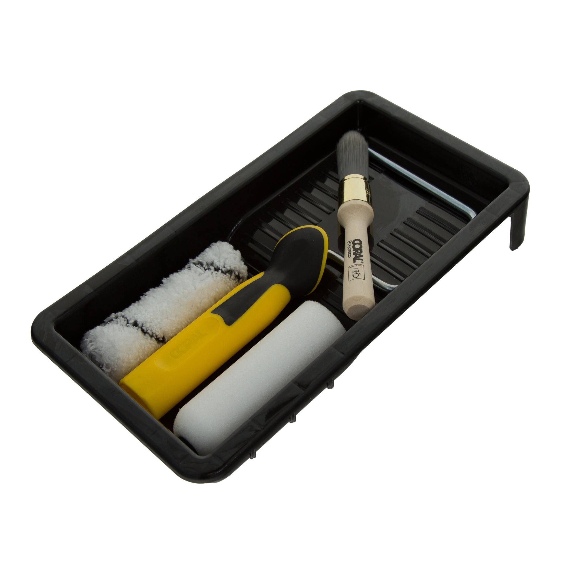 The Coral Easy Coater Roller and Brush Set is a versatile solution for decorators seeking reliable tools for a variety of finishes. This set includes a precision round brush, ideal for detailed work and cutting in, ensuring accuracy in tight corners and along edges.