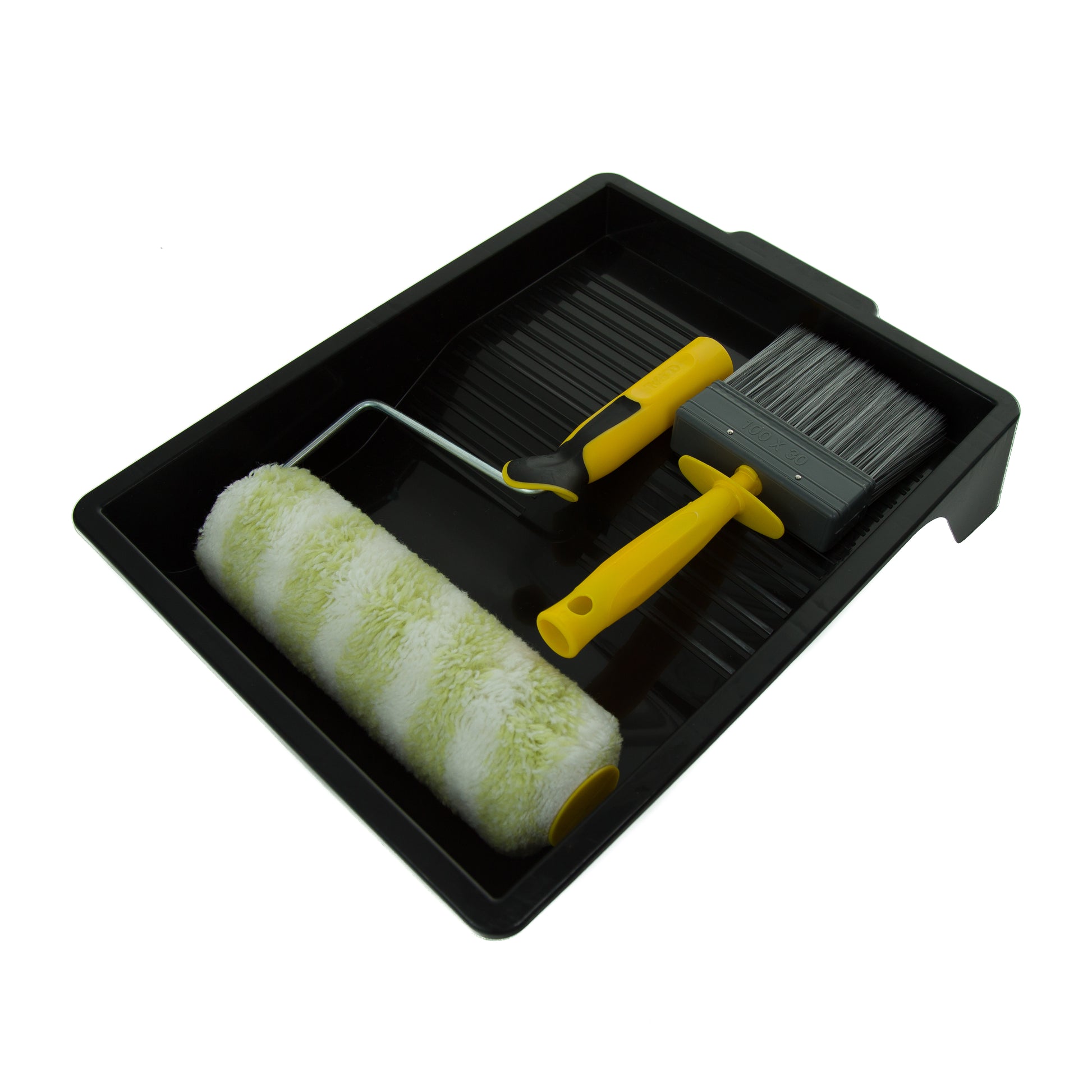 The Coral Max Coat Exterior Painting Set is a purpose-built solution for painting exterior surfaces such as masonry, sheds, fences, and decking. This set features large 9" high-capacity microfibre roller sleeves, designed for excellent coverage and a smooth, shed-resistant finish on expansive or textured surfaces. Also included is a brush specifically chosen to handle the demands of exterior applications, helping to coat rough or uneven materials with efficiency.