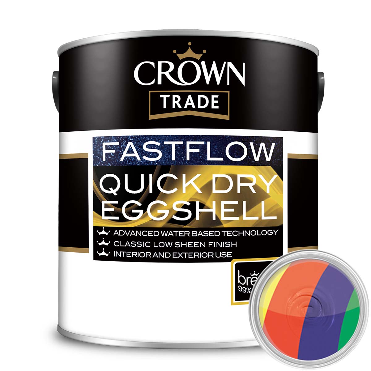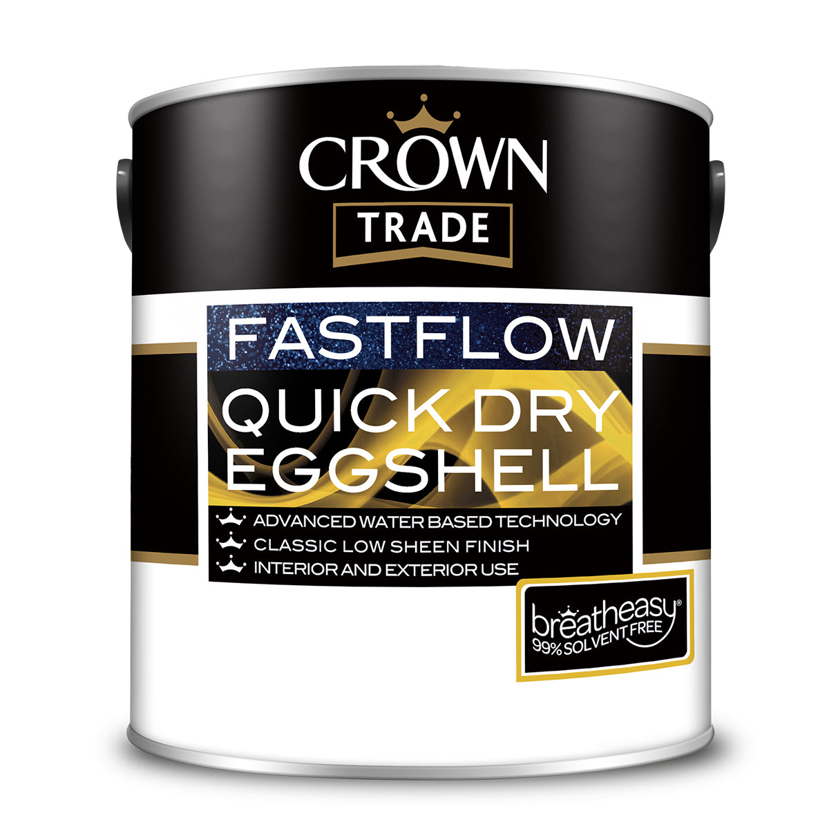 This eggshell paint combines excellent flow and application characteristics, ensuring a smooth, even finish that closely replicates the look and durability typically associated with solvent-based products. Its formulation allows for easy brushing or spraying, providing professionals with greater control and a superior finish. Overall, Crown Trade Fastflow Quick Dry Eggshell offers the ideal balance of traditional aesthetic appeal and the health, safety, and environmental advantages of a water-based paint.