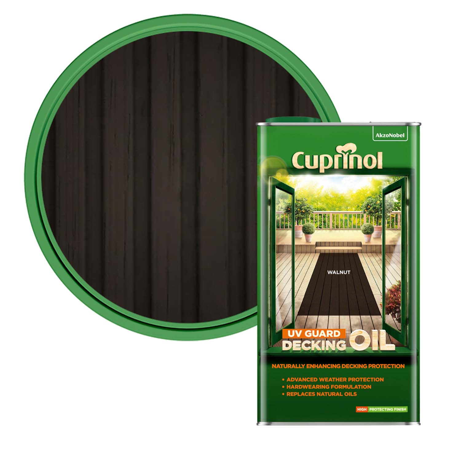 Cuprinol UV Guard Decking Oil is specifically designed to revitalise and preserve outdoor decking, combining colour enhancement with long-lasting protection. Its advanced, tinted formula helps to restore the appearance of weathered timber, enriching the natural grain while adding a subtle hue to refresh tired surfaces.