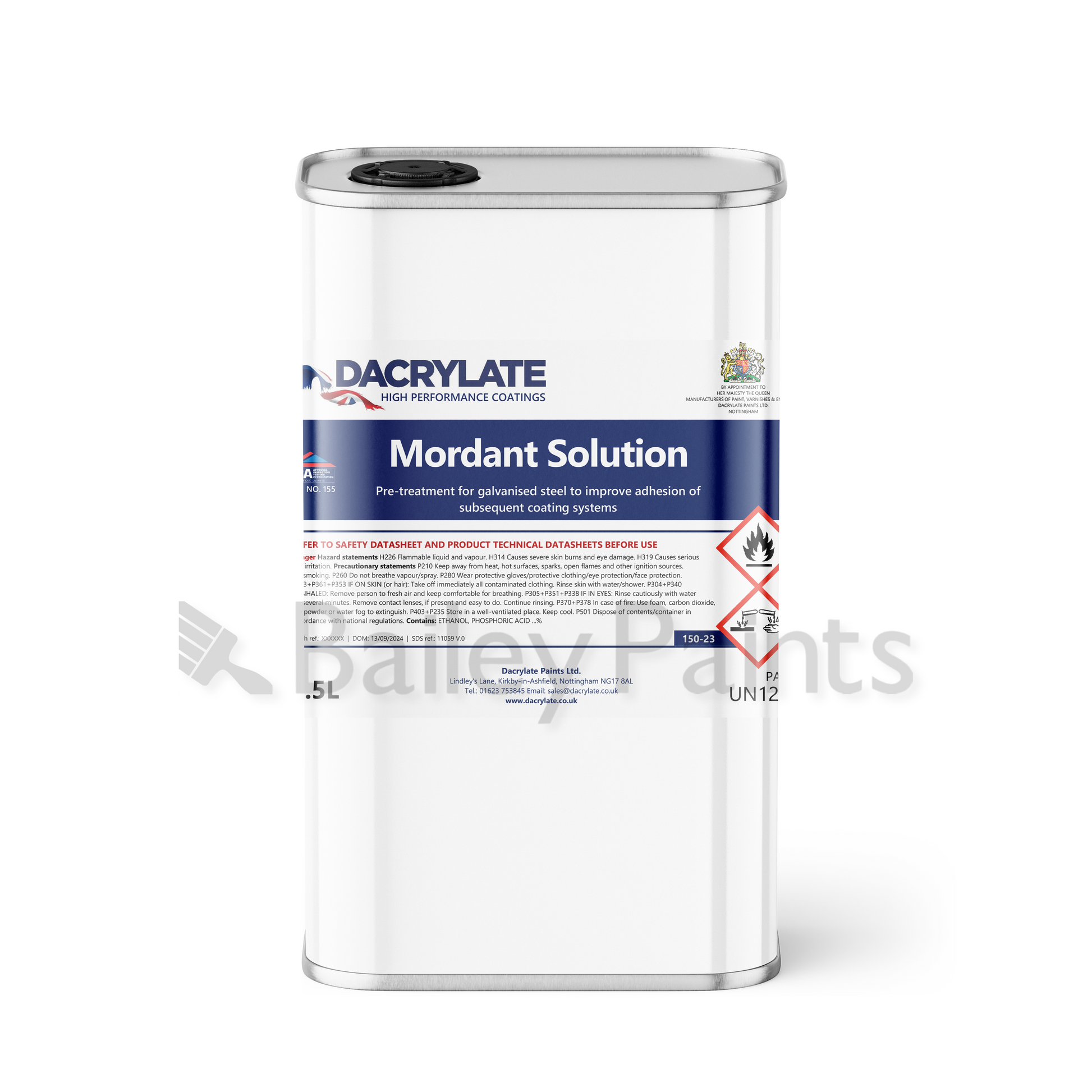 Dacrylate Mordant T Wash is a pre-treatment solution designed to enhance the adhesion of coatings to galvanised steel. It is particularly effective in preparing galvanised surfaces for primer and subsequent coating systems.