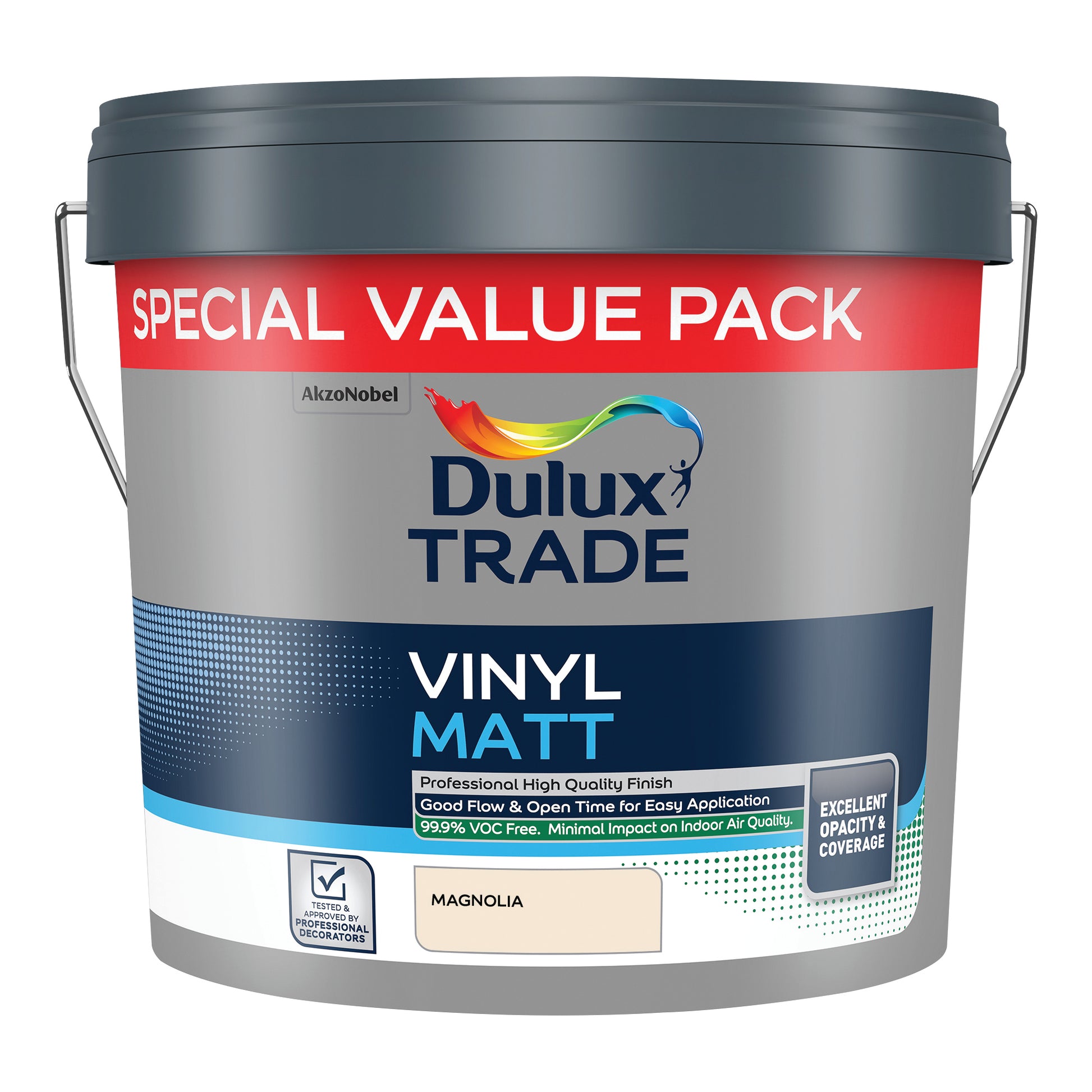 Dulux Trade Vinyl Matt is a high-quality, water-based emulsion designed to deliver excellent opacity and a smooth, even finish across interior walls and ceilings. Formulated with advanced AkzoNobel technology, it offers superior coverage - up to 17m² per litre - and outstanding flow, ensuring effortless application and a professional result.