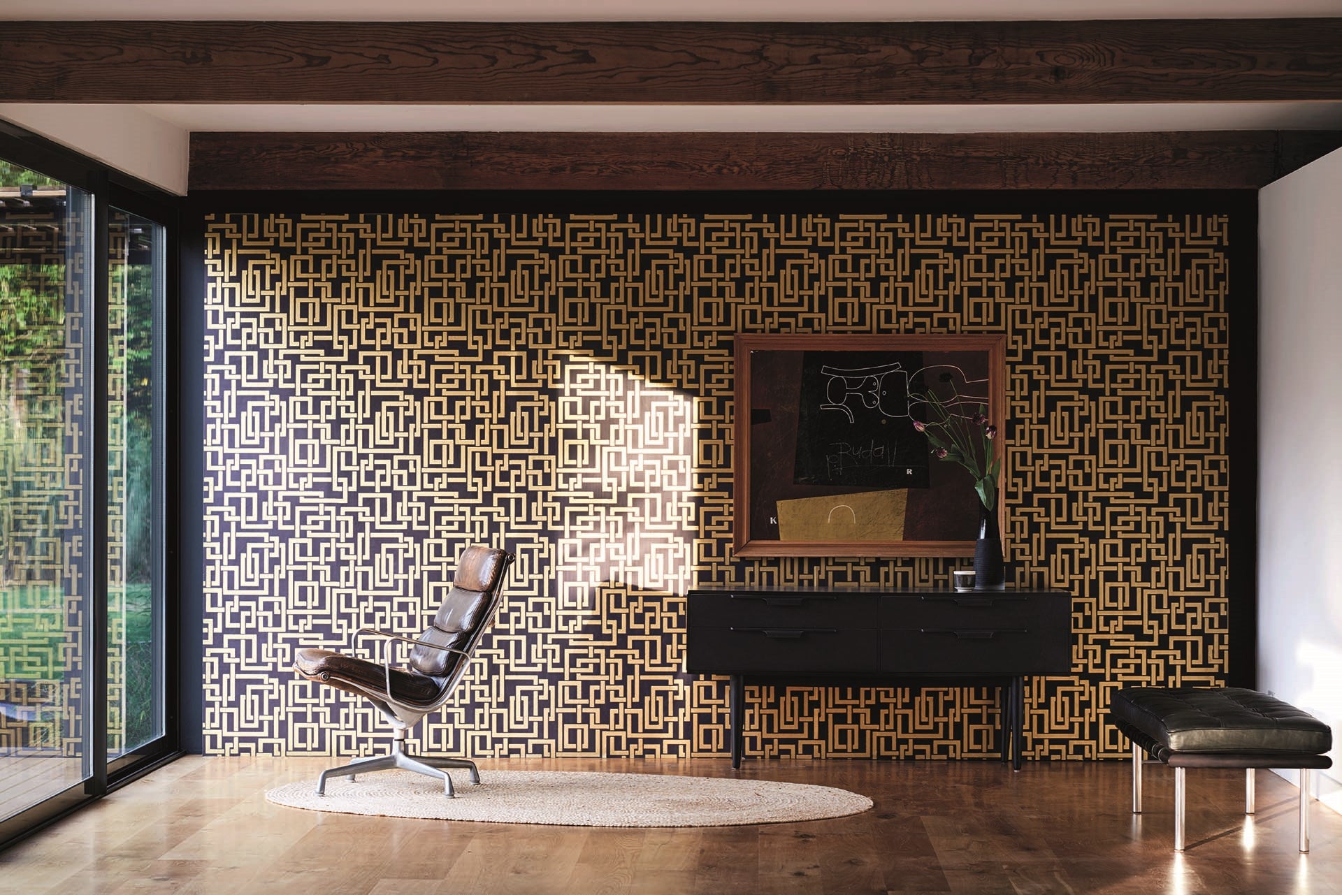 The interlocking rectangles of Farrow & Ball's Enigma wallpaper are inspired by the encoding machine of the same name, famously deciphered by Alan Turing during the Second World War. Its combination of mathematical precision and engaging movement makes a mesmerising feature of any wall.