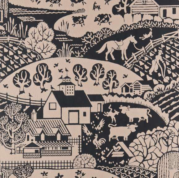 Farrow & Ball's Gable papers are playful, pastoral and utterly charming. Depicting traditional village and farmyard scenes with clean, modern styling, its large scale statement pattern is studded with little details that spark the imagination, taking on added character as you look.