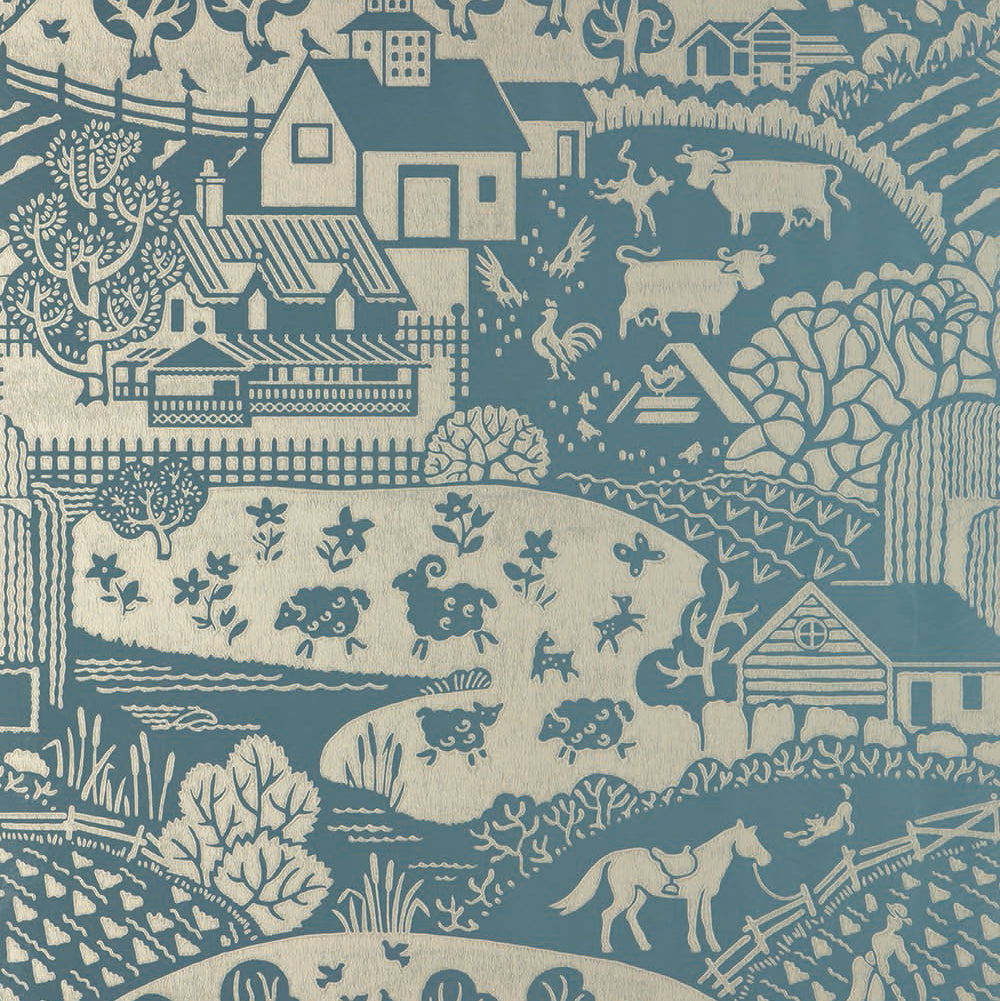 Farrow & Ball's Gable papers are playful, pastoral and utterly charming. Depicting traditional village and farmyard scenes with clean, modern styling, its large scale statement pattern is studded with little details that spark the imagination, taking on added character as you look.