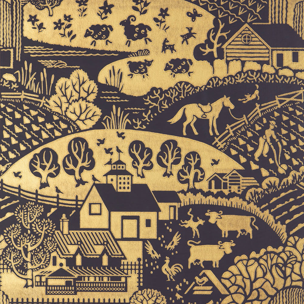 Farrow & Ball's Gable papers are playful, pastoral and utterly charming. Depicting traditional village and farmyard scenes with clean, modern styling, its large scale statement pattern is studded with little details that spark the imagination, taking on added character as you look.