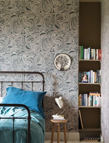 Farrow & Ball's Tourbillon wallpaper is a dynamic print bursting with joyful movement. Its segmented circle design, inspired by early 20th-century French silks, brings an elegant Art Deco appeal to walls.