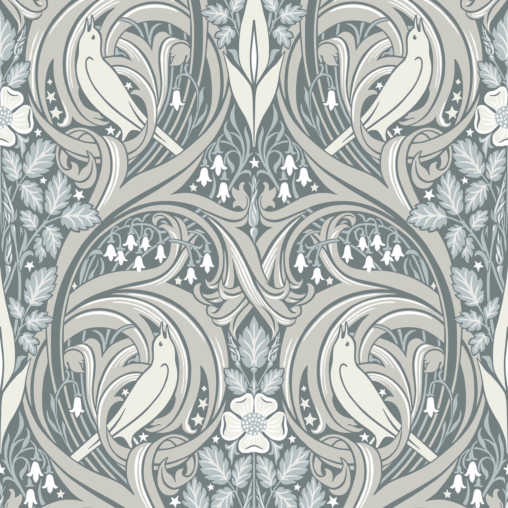 The Bird Scroll wallpaper from the Arts and Crafts collection by Galerie beautifully blends the elegance of Arts and Crafts with the distinctive motifs of Art Nouveau. This iconic wallpaper is a testament to vintage-inspired prints, featuring delicate birds gracefully perched amidst a scrolling Art Nouveau-inspired damask.