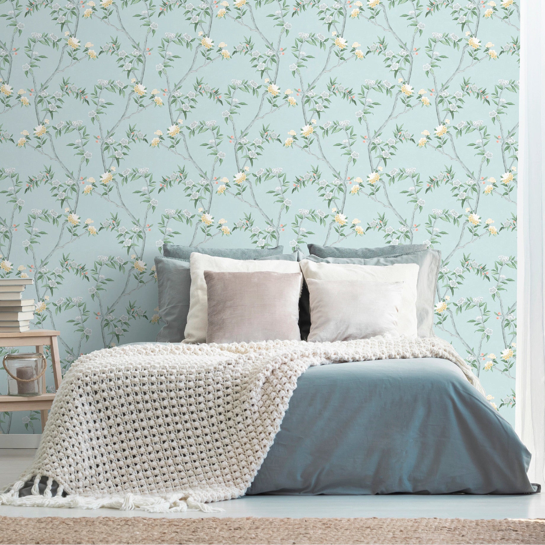 Immerse yourself in the beauty of nature with the Chinoiserie wallpaper from the Spring Blossom collection by Galerie. This wallpaper depicts an intricate tree print with leaves and floral buds, presented in a typical chinois style. The design draws inspiration from the flower genre that was popular in Japanese woodblock prints, evident in the captivating details that adorn this wallpaper. Well-suited to tranquil spaces such as bedrooms and lounges, the Chinoiserie wallpaper brings an air of sophistication and serenity to your interior.