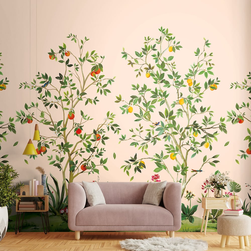The Citrus Grove mural is perfect for creating a statement feature wall in kitchens, dining areas, sunrooms, or any space where you want to infuse a touch of Mediterranean charm. Its vibrant colors and lively design make it suitable for both contemporary and traditional interiors.