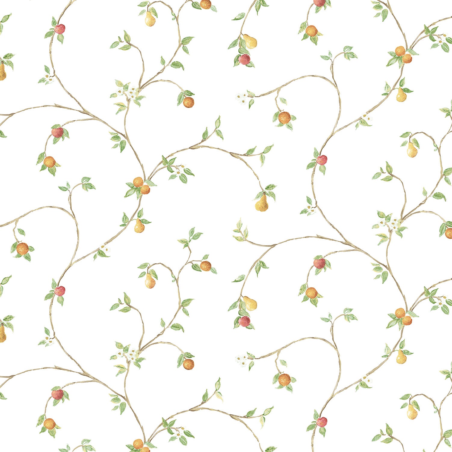 Bring the beauty of nature into your kitchen with Kitchen Style 3 Wallpaper by Galerie, featuring trailing leafy branches bearing an assortment of fruit. This wallpaper adds a touch of natural elegance and freshness to your kitchen space, creating a visually captivating and vibrant atmosphere.