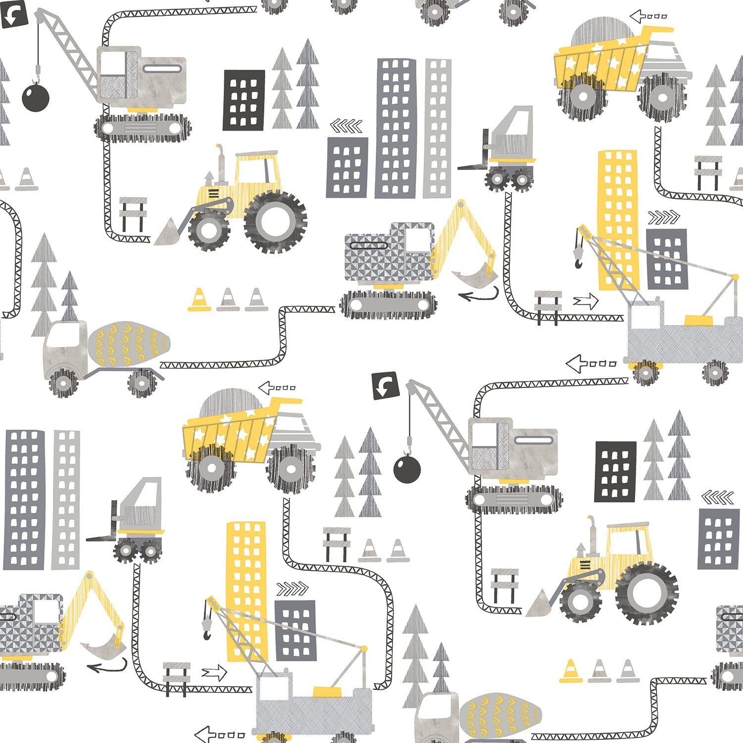 Spark your children's creativity and curiosity with the Construction wallpaper from the Tiny Tots 2 collection by Galerie. This delightful design showcases a lively array of construction vehicles, including diggers, cranes, fork lifts, and cement mixers, providing an engaging and playful backdrop for playrooms and bedrooms. With three delightful colour options to choose from, this wallpaper not only adds a fun touch to the decor but also encourages imaginative play, making it an ideal choice for creating an inspiring environment for your little ones.
