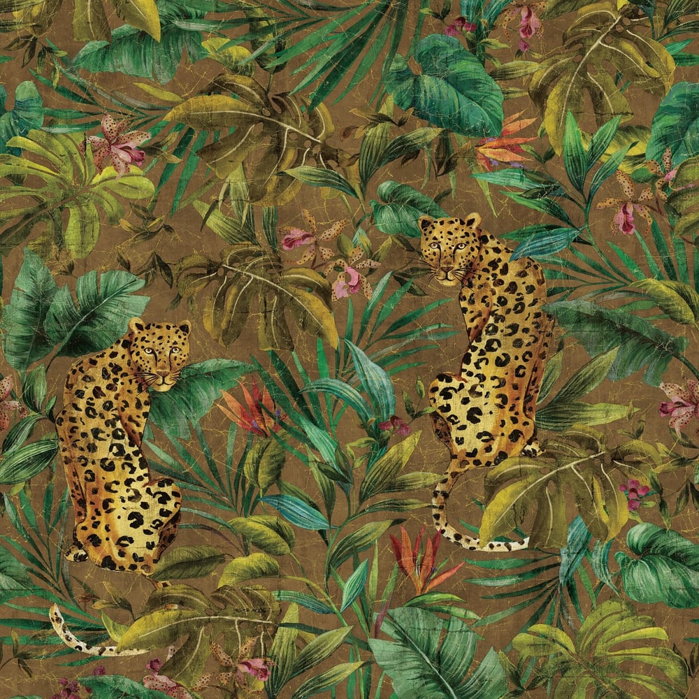Galerie Wallpaper “Exotica” by Daisy Bennett is a captivating mural that brings the allure of the tropics into your home. This design features a lush jungle scene with leopards lounging amidst dense foliage, creating a serene yet exotic atmosphere.