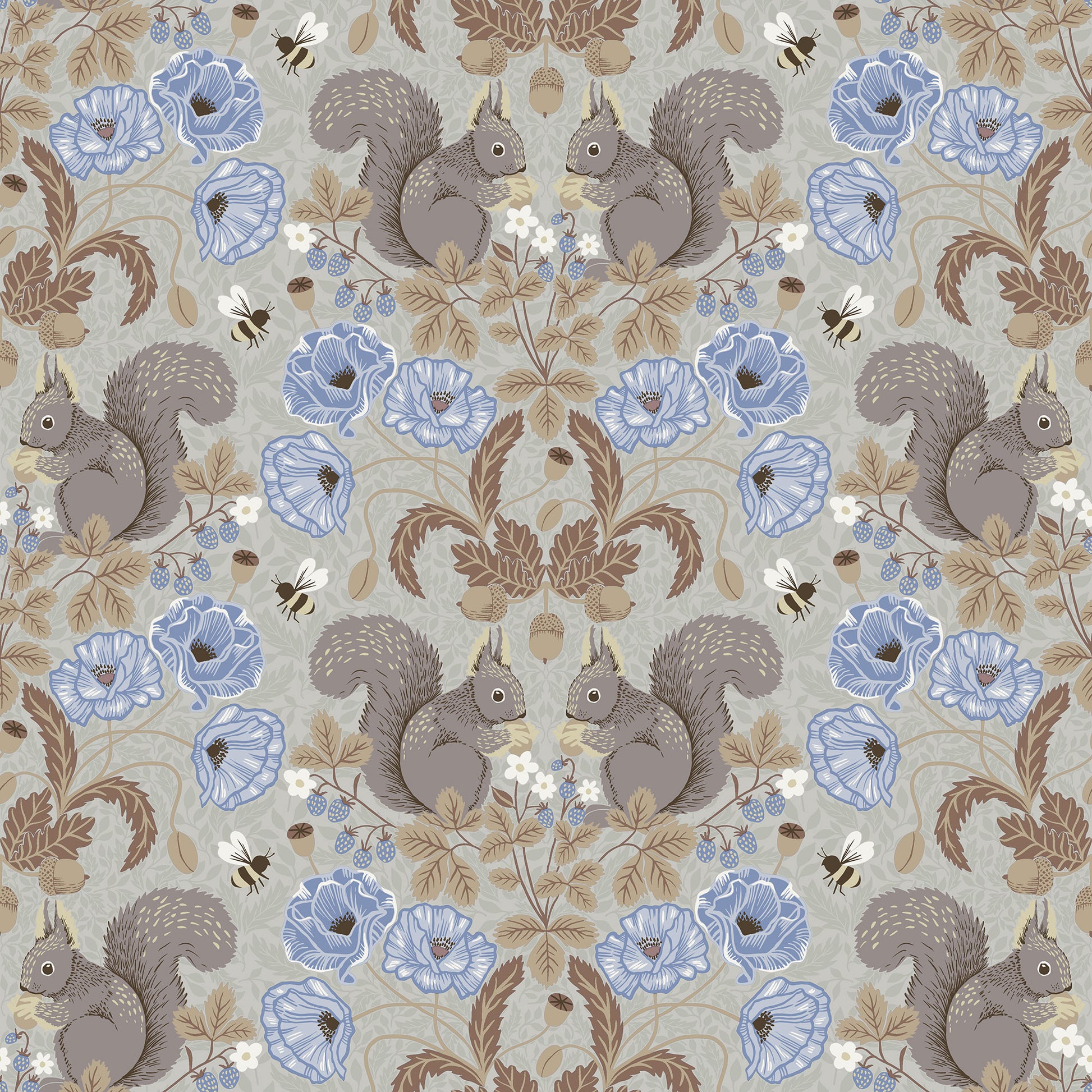 Indulge in the charm of the Kurre wallpaper from the Apelviken 2 collection by Galerie, a delightful design meticulously crafted by Swedish artist Hanna Wendelbo. This enchanting wallpaper features adorable bushy-tailed squirrels engaged in the timeless pursuit of gathering acorns, creating a heartwarming scene that appeals to both adults and children alike.