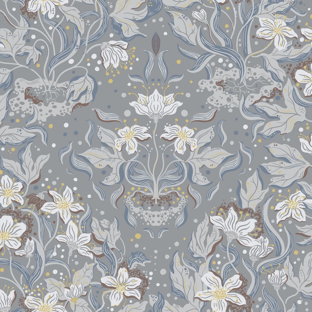 “Lisa” from Galerie’s Fagring range offers a delicate botanical touch with Art Nouveau overtones. The pattern is dotted with wood anemone motifs, branches and leaves in graceful, flowing arrangements.
