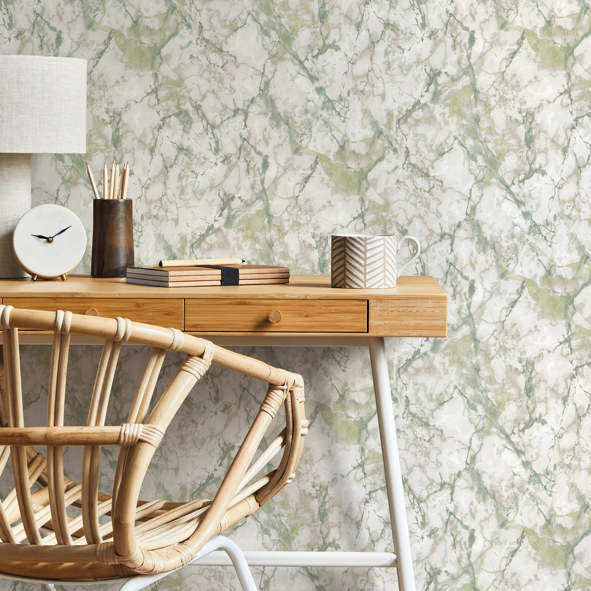 Whether used on all four walls to envelop the space in elegance or paired with other designs within the collection for a harmonious blend, this wallpaper promises to bring the regal allure of marble to your home. The attention to detail in replicating the intricate patterns and tones of marble ensures a stunning visual impact, allowing you to infuse your living space with the enduring beauty of this exquisite natural material.