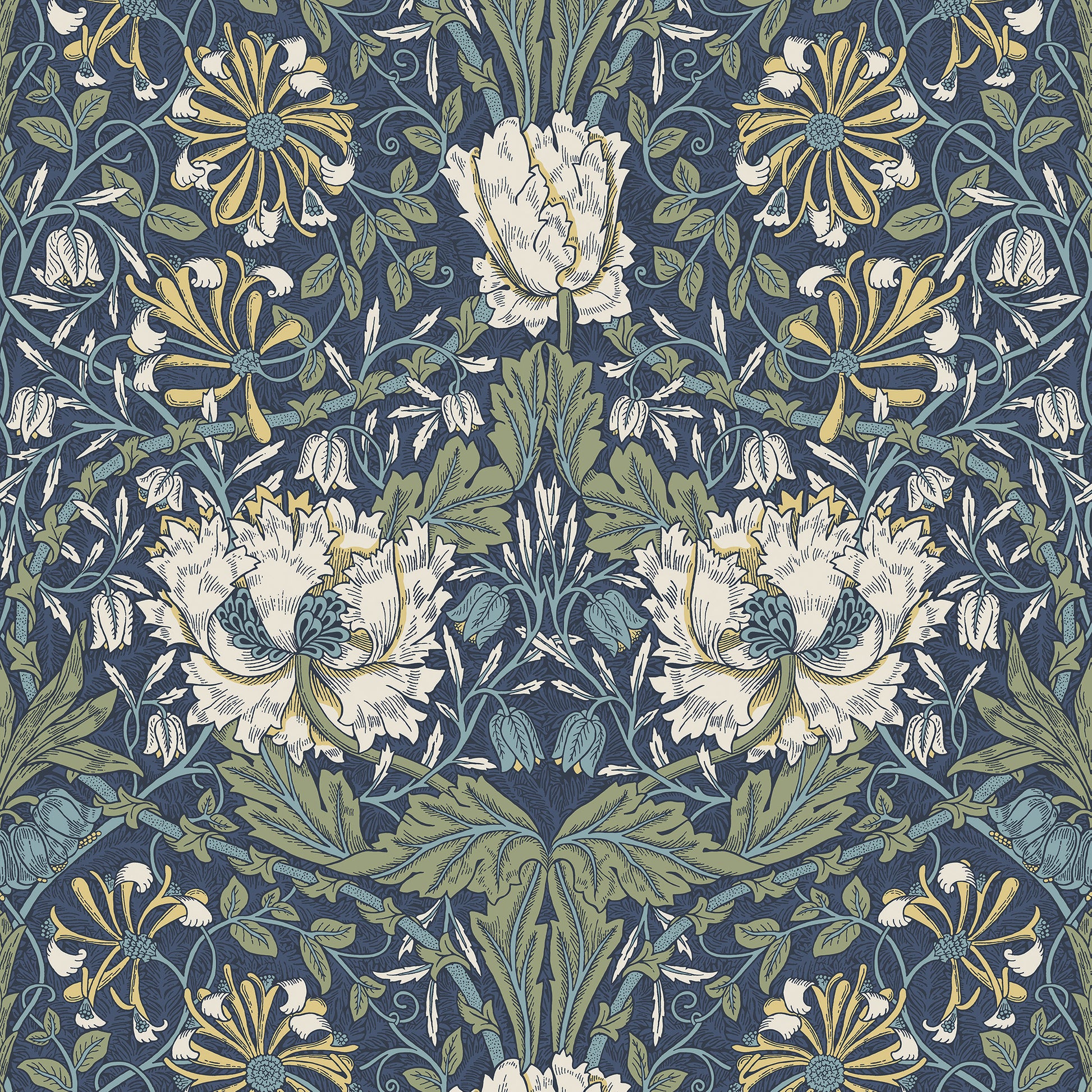This wallpaper exudes a timeless charm, and its use of Honeysuckle flowers, reminiscent of those often featured in William Morris' iconic designs, adds a touch of historical significance. Ogee Flora stands as a high-end option for interior decor, combining a rich aesthetic with the sophistication of the Arts & Crafts movement. The attention to detail and commitment to authenticity in the chalky, matt finish make this wallpaper a splendid choice for those seeking to bring a sense of classic refinement to their living space.