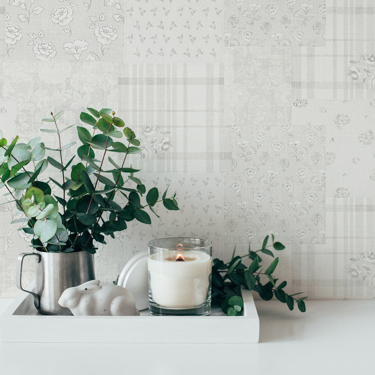 Incorporate this repeat print into bedroom, living room, or kitchen schemes to infuse your home with an easy-going cottage style. Printed on vinyl with a non-woven backing, this design exudes romantic whimsy while offering practical durability. Nostalgic and light-hearted, the Maison Charme Patchwork Vintage Floral print celebrates the beauty of imperfection and cherished heirlooms, creating a timeless and inviting atmosphere in your interior decor.