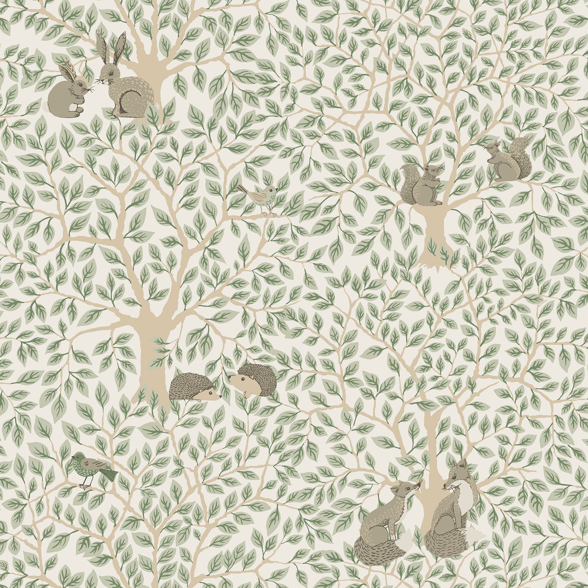 Immerse your living space in the enchanting beauty of nature with the Per wallpaper from the Apelviken 2 collection by Galerie, a captivating forest design envisioned by the talented Swedish artist Hanna Wendelbo. Perfect for both adults and children, this wallpaper features endearing scenes of cute squirrels and birds perched in the treetops, while bushy-tailed foxes and hares find their home under the roots of the trees.
