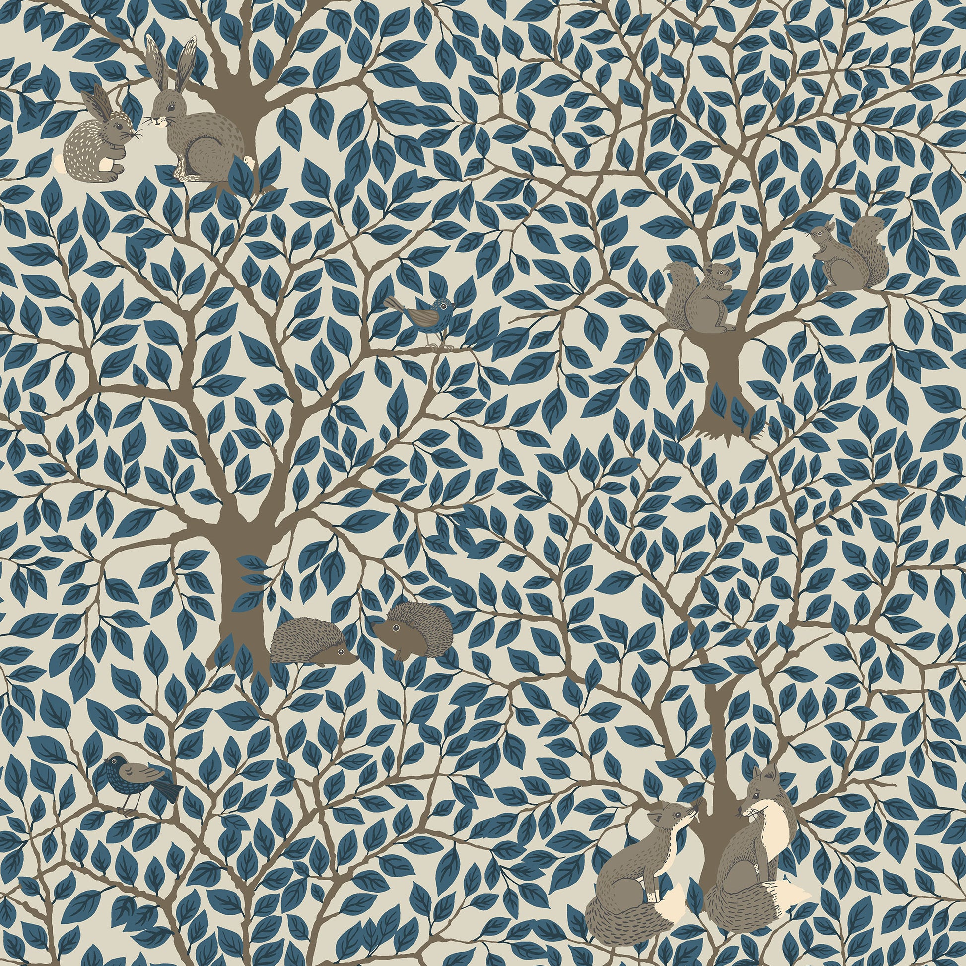 Immerse your living space in the enchanting beauty of nature with the Per wallpaper from the Apelviken 2 collection by Galerie, a captivating forest design envisioned by the talented Swedish artist Hanna Wendelbo. Perfect for both adults and children, this wallpaper features endearing scenes of cute squirrels and birds perched in the treetops, while bushy-tailed foxes and hares find their home under the roots of the trees.