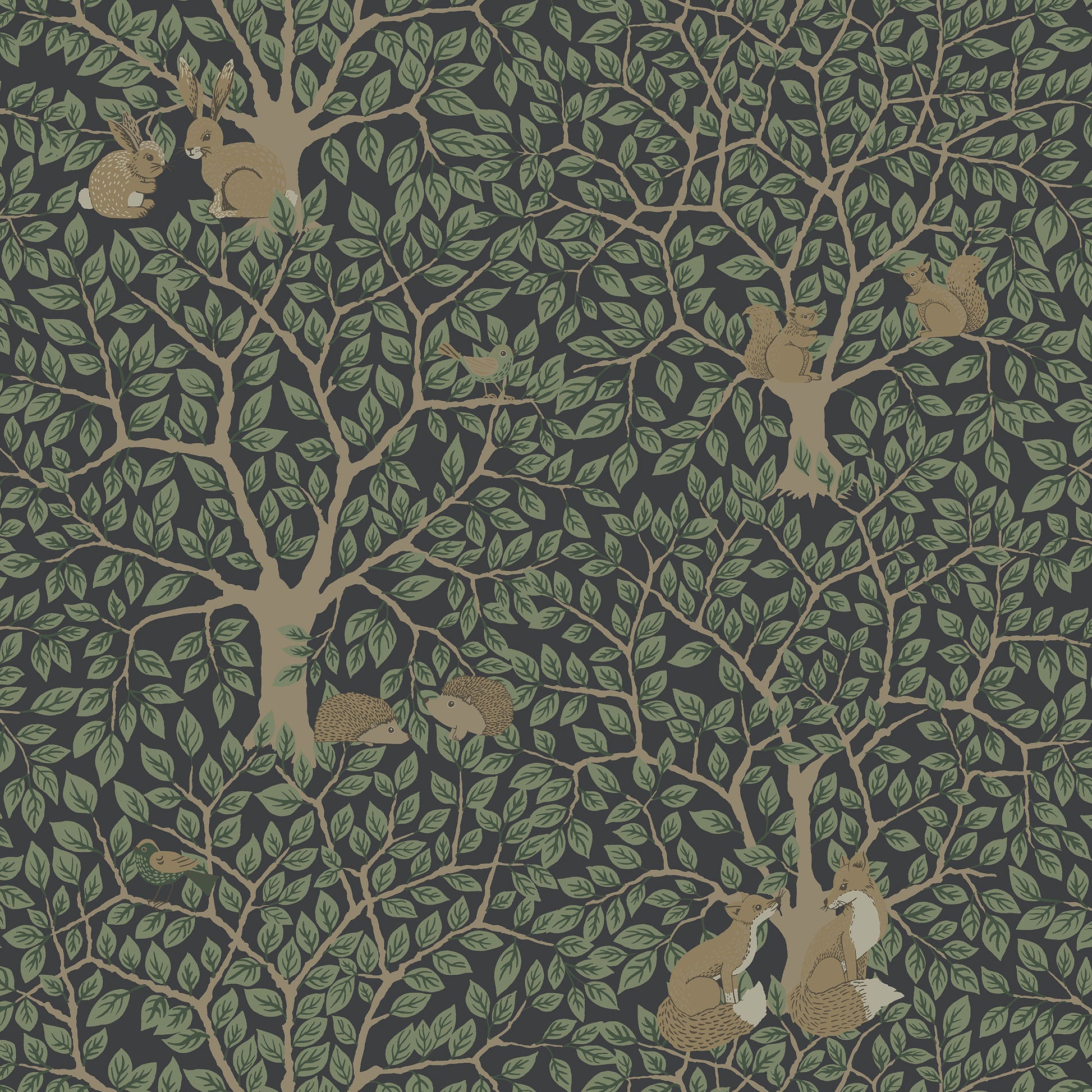 Immerse your living space in the enchanting beauty of nature with the Per wallpaper from the Apelviken 2 collection by Galerie, a captivating forest design envisioned by the talented Swedish artist Hanna Wendelbo. Perfect for both adults and children, this wallpaper features endearing scenes of cute squirrels and birds perched in the treetops, while bushy-tailed foxes and hares find their home under the roots of the trees.