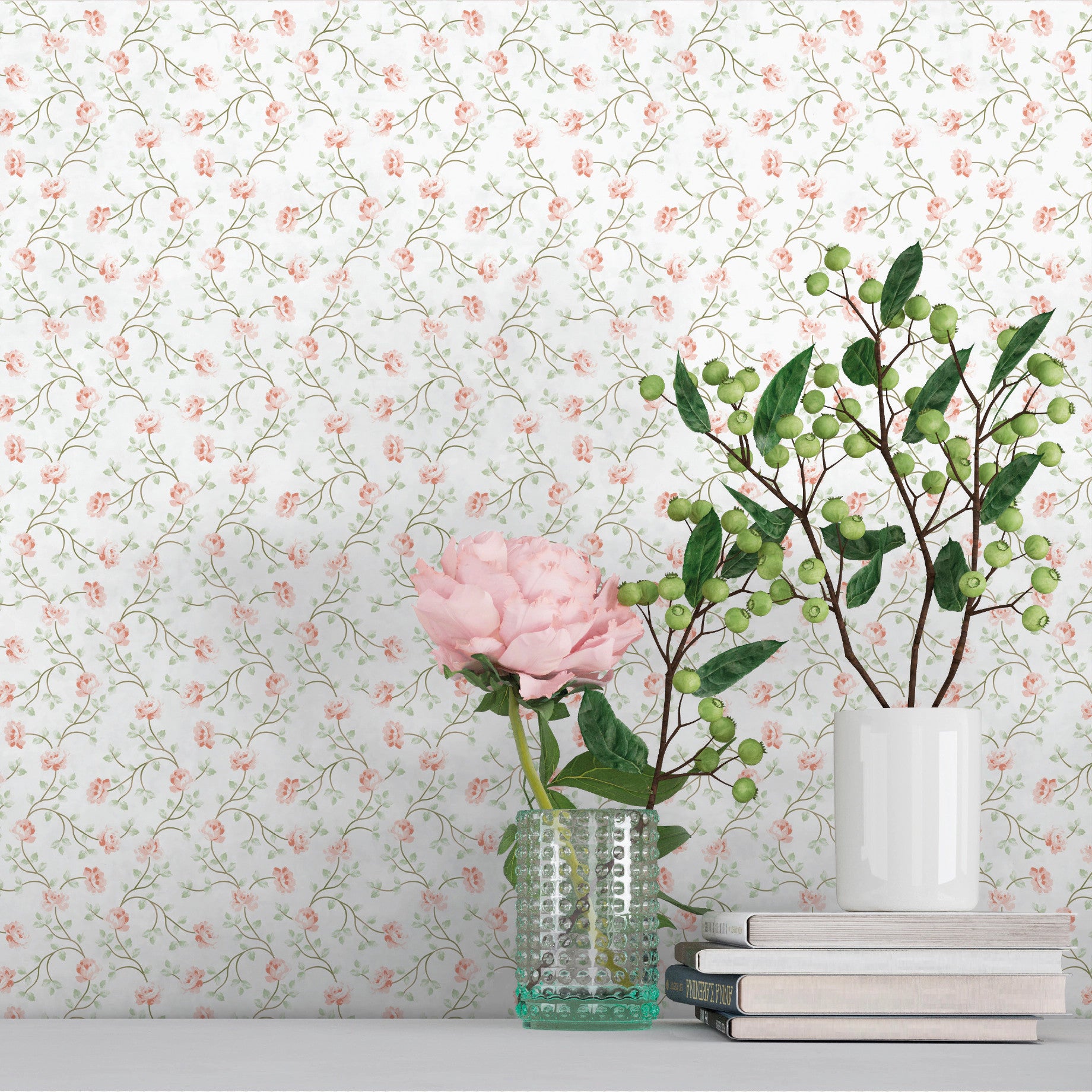 Elevate the timeless charm of your home with the delicate beauty of this mini rose wallpaper from Galerie. The intricate floral pattern, featuring miniature roses on a trail of foliage, brings a touch of elegance to any room. The small-scale and repetitive nature of the design, set against a soft neutral background, creates a timeless aesthetic that seamlessly blends with various interior styles.
