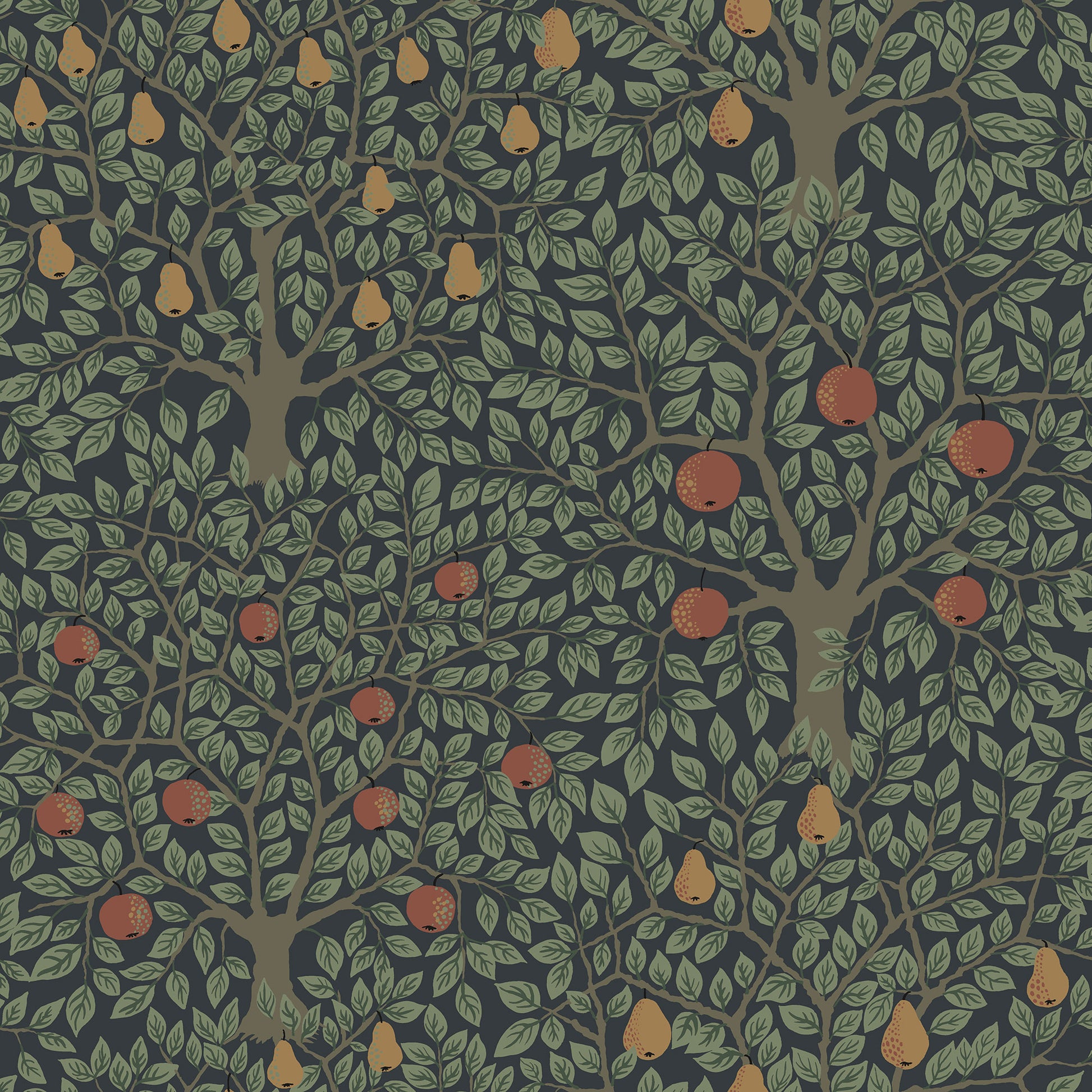 Elevate your home interior with the charm of the Pomona wallpaper from the Apelviken 2 collection by Galerie, a delightful print of fruit trees designed by Swedish artist Hanna Wendelbo. This captivating wallpaper showcases an orchard of ripe apple and pear trees, offering a serene and visually appealing atmosphere.