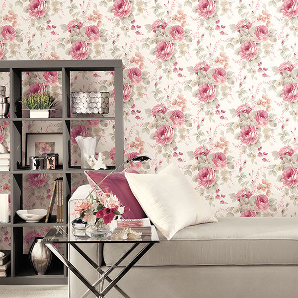 When contemplating the application of this wallpaper, it's advisable to consider the scale of the room and the desired visual impact. The large blooms of flowers make a bold statement, and the trailing rose pattern adds a sense of movement and grace to the overall design. This wallpaper is well-suited for creating a focal point in a room or as an accent wall.
