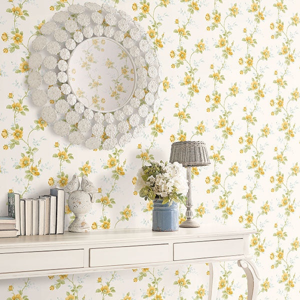 When considering the application of this wallpaper, it's advisable to take into account the lighting conditions and colour scheme of the space. The swirling vines and watercolour roses provide a nuanced and artistic touch, making it suitable for a variety of design styles.