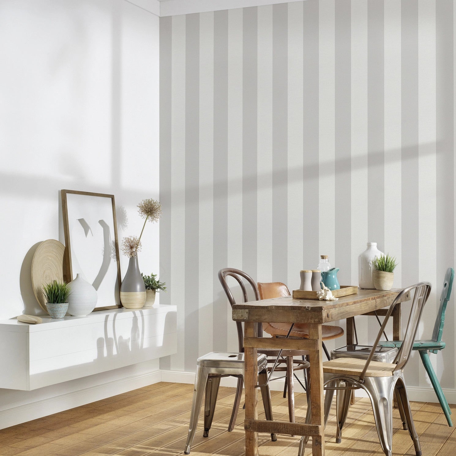 This wallpaper is not only visually appealing but also versatile, complementing a range of interior styles. Whether you're aiming for a playful and vibrant atmosphere or a serene and comforting space, the wide stripe design effortlessly adapts to your desired aesthetic. Enhance your home with this stylish and versatile wallpaper, creating an inviting and cheerful ambiance.