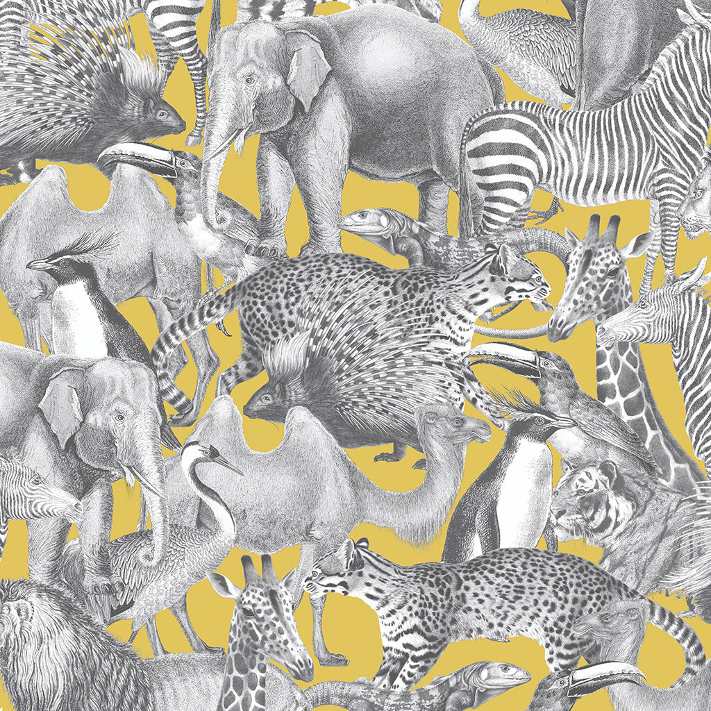 Inspired by the natural safari, Kingdom is a sketch style illustration demonstrating all wildlife, large and small. From elephants and giraffes to camels and penguins, this beautiful and unique design will create a bold statement in any space.
